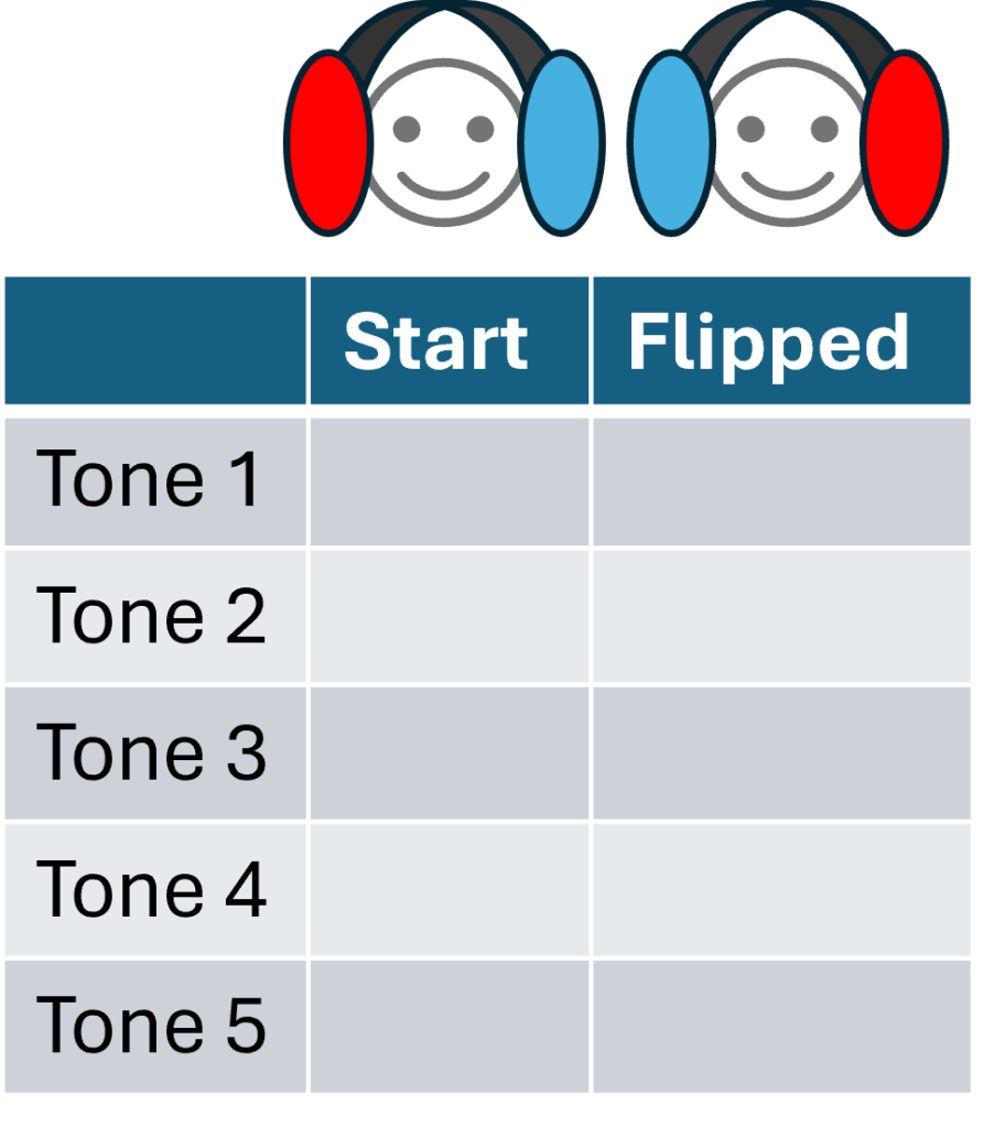 How do I work out my results? For each tone, compare the numbers you got when your earphones were flipped and not flipped. If they are both greater than 10, then your left ear is more sensitive. If they are both less than -10, then your right ear is more sensitve.